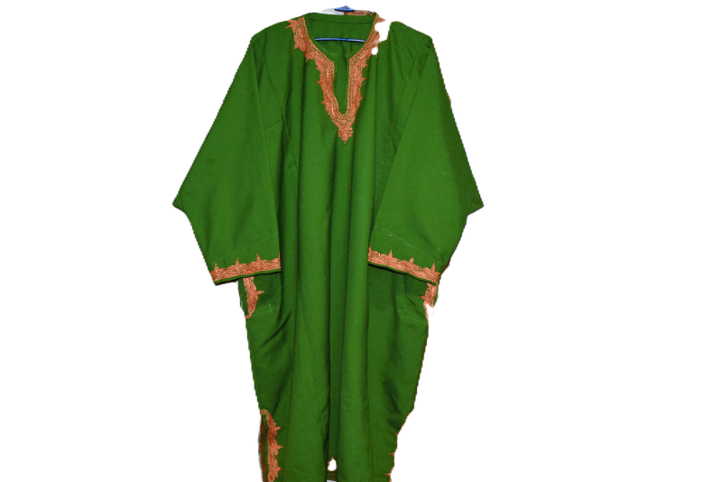 The Kashmiri Tilla Pheran is a traditional and elegant long robe worn by both men and women in Kashmir, adorned with intricate Tilla embroidery—a form of metallic threadwork using gold or silver threads. This attire reflects Kashmiri heritage and is often worn during festive occasions, weddings, and special gatherings.