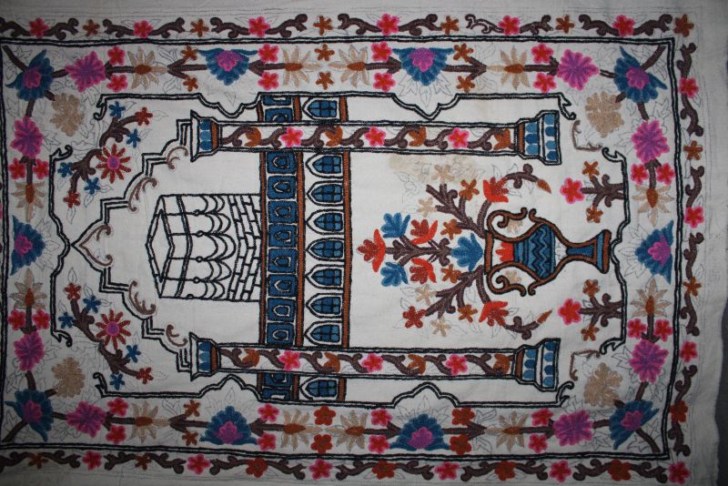 Experience the beauty of Kashmiri craftsmanship with this luxurious prayer mat, intricately designed to enhance your spiritual moments. Woven using traditional techniques, this Namda/Wool/Silk prayer rug showcases fine embroidery and rich patterns, reflecting the cultural heritage of Kashmir.
