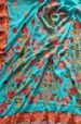 Thick wool yarns are hooked deeply into the base, covering the fabric entirely to create a dense, warm, and rugged texture similar to a hand-knotted carpet.