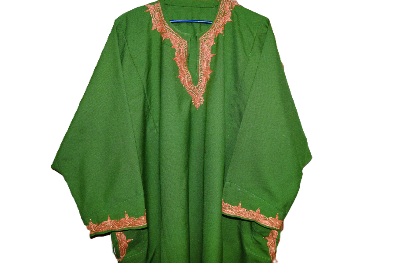 The Kashmiri Tilla Pheran is a traditional and elegant long robe worn by both men and women in Kashmir, adorned with intricate Tilla embroidery—a form of metallic threadwork using gold or silver threads. This attire reflects Kashmiri heritage and is often worn during festive occasions, weddings, and special gatherings.