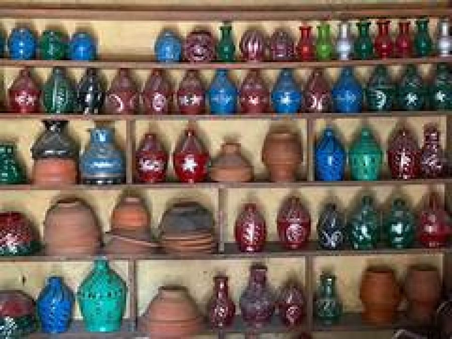 Featuring the sturdy, bowl-shaped earthen pot (kundal or kang) essential for weaving the famous Kashmiri firepot, the Kangri.