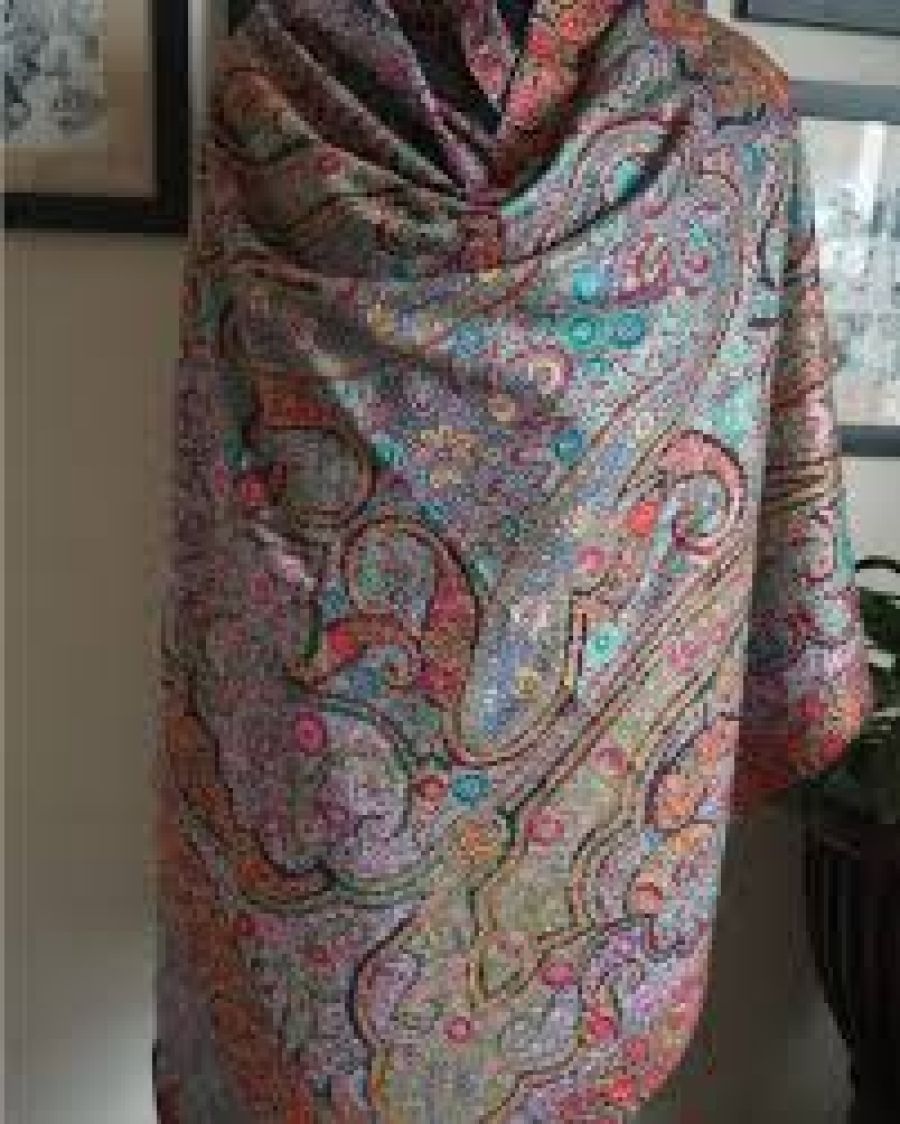 Elegant floral Sozni patterns bloom softly, created over weeks of meticulous handiwork.